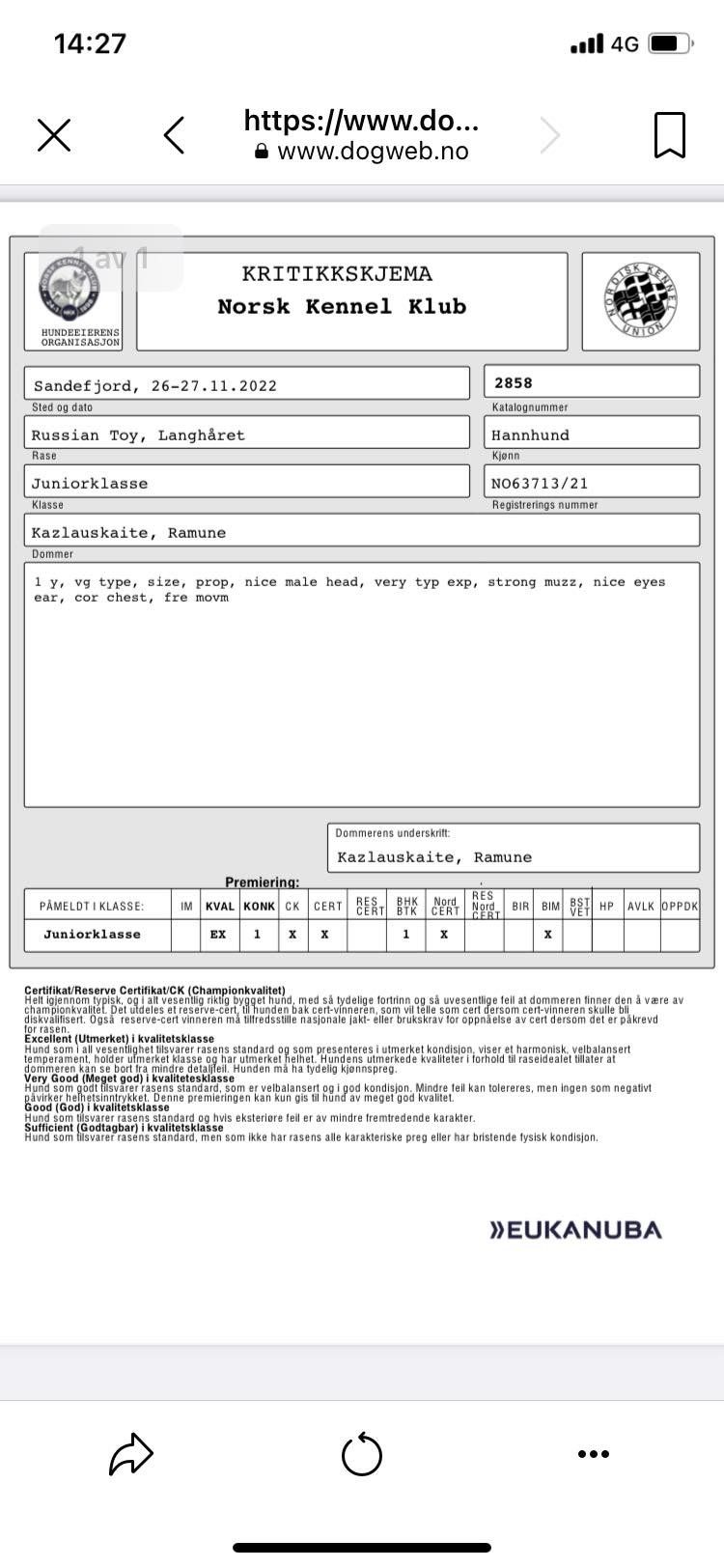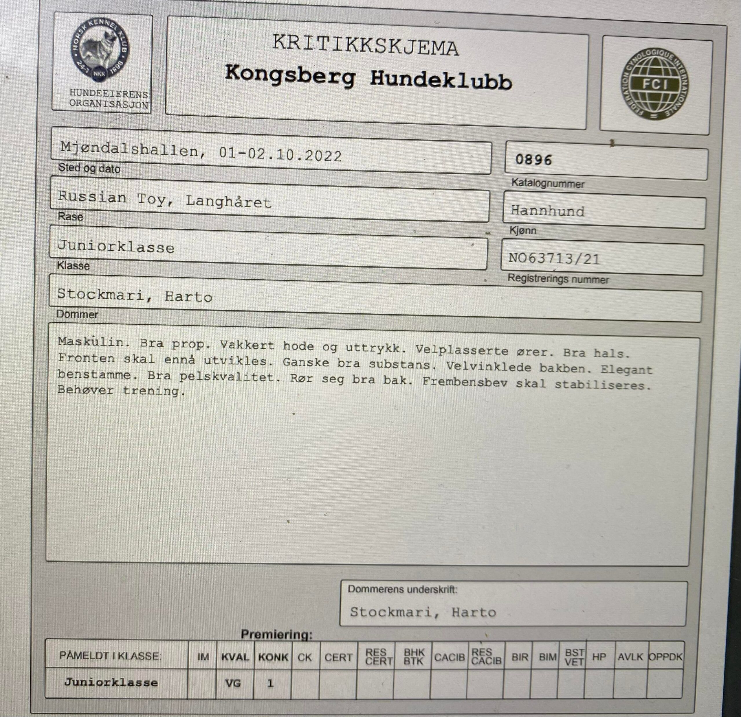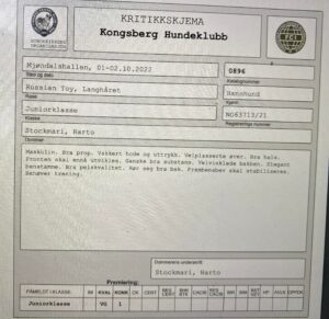 Han fikk EXC JK 1JKK begge dager. Dommerne mener han trenger å utvikle seg mer. Men han sjarmete alle med sitt fantastiske gemytt, Han er virkelig en liten lykkepille. Les mer om utstillingen på denne siden https://www.missjuniverse.no/utstilling/